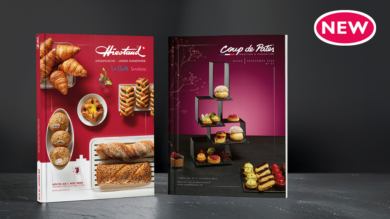 Freuen Sie sich auf exklusive Kreationen aus dem COUP DE PATES Katalog, die Ihre Gäste bestimmt noch nie probiert haben – ergänzt durch feine Backwaren der Marken HIESTAND, LA CARTE und OH MY SWEETNESS aus dem HIESTAND Katalog.