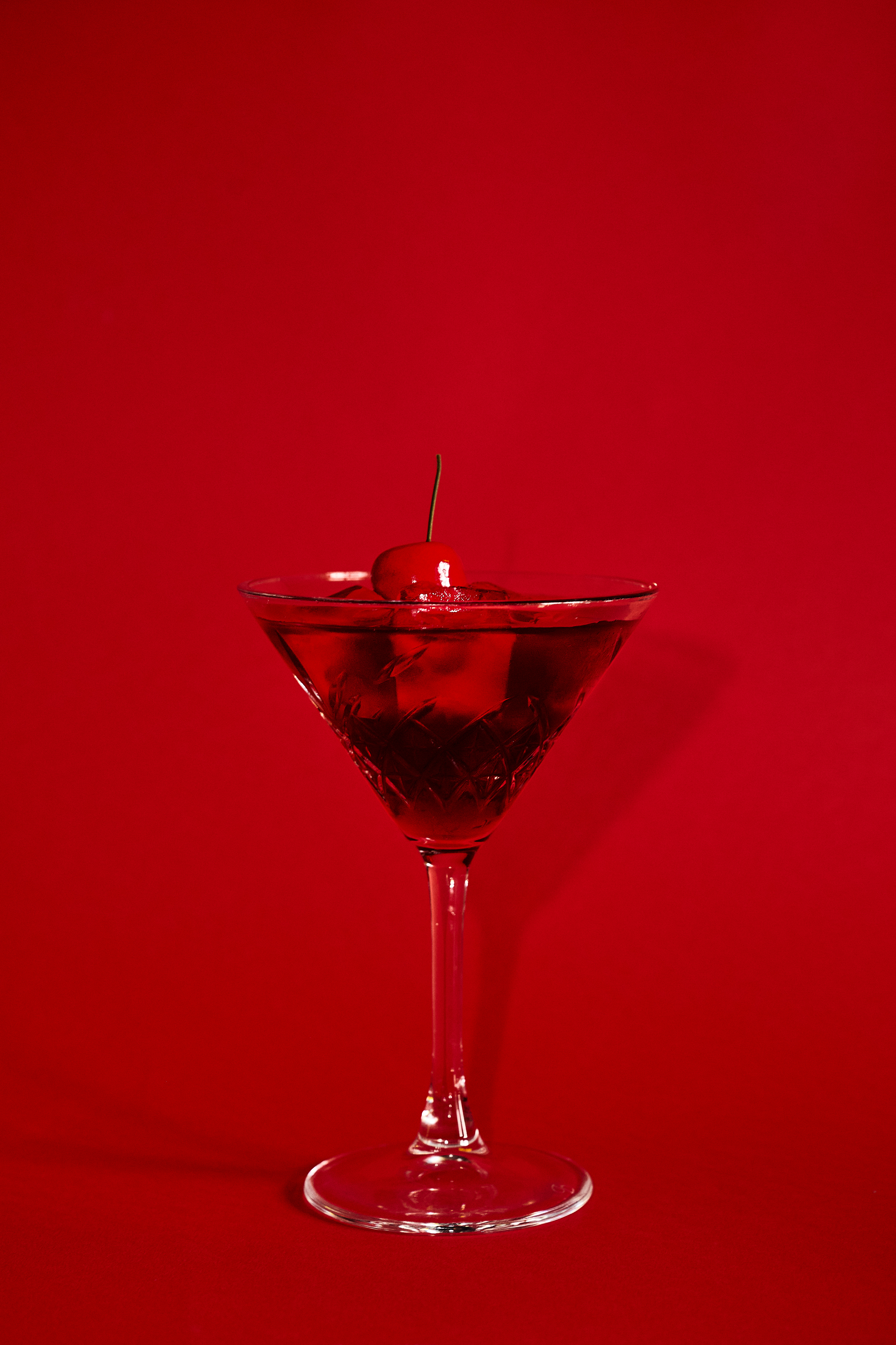 Fruchtig und leuchtend rot präsentiert sich Olé Olé Liq im eisgekühlten Martini-Glas, veredelt mit einer aromatischen Orangenzeste und winterlichen Beeren. Der lebhafte Farbton und die frischen Fruchtaromen machen ihn zu einem festlichen Highlight.