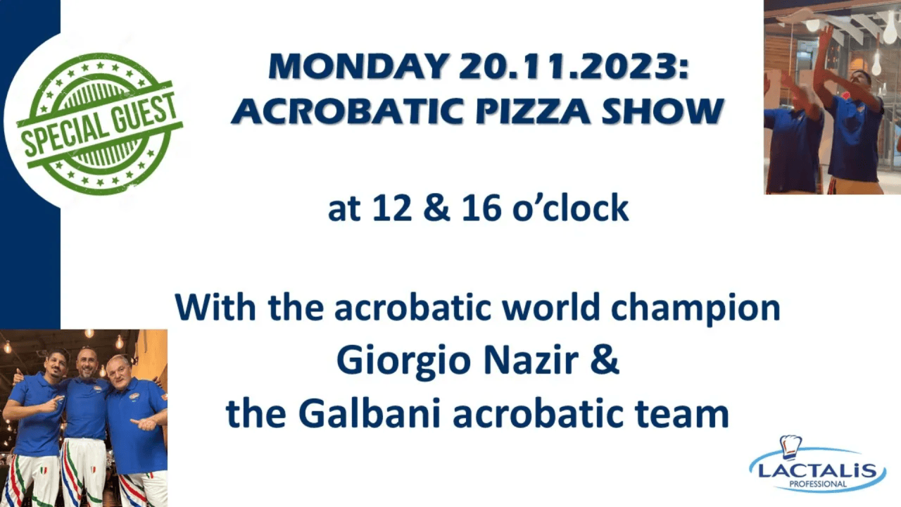 Pizza dough thrown high into the air, caught and playful figures - that's what awaits you at our unique pizza acrobatics show on Monday, 20.11.